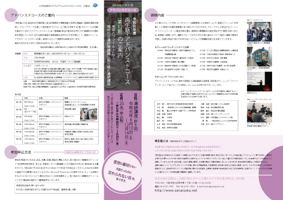 NPO法人再生塾アドバンスドコースでは、実際のフィールドでのケース・スタディを通した実践的な研修を、8月〜12月に渡って行います。