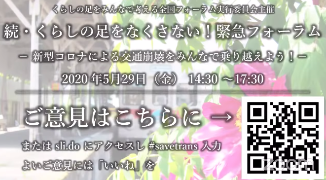 「続・くらしの足をなくさない!緊急フォーラム 新型コロナウイルスによる交通崩壊をみんなで乗り越えよう!」がオンラインで開催されました。