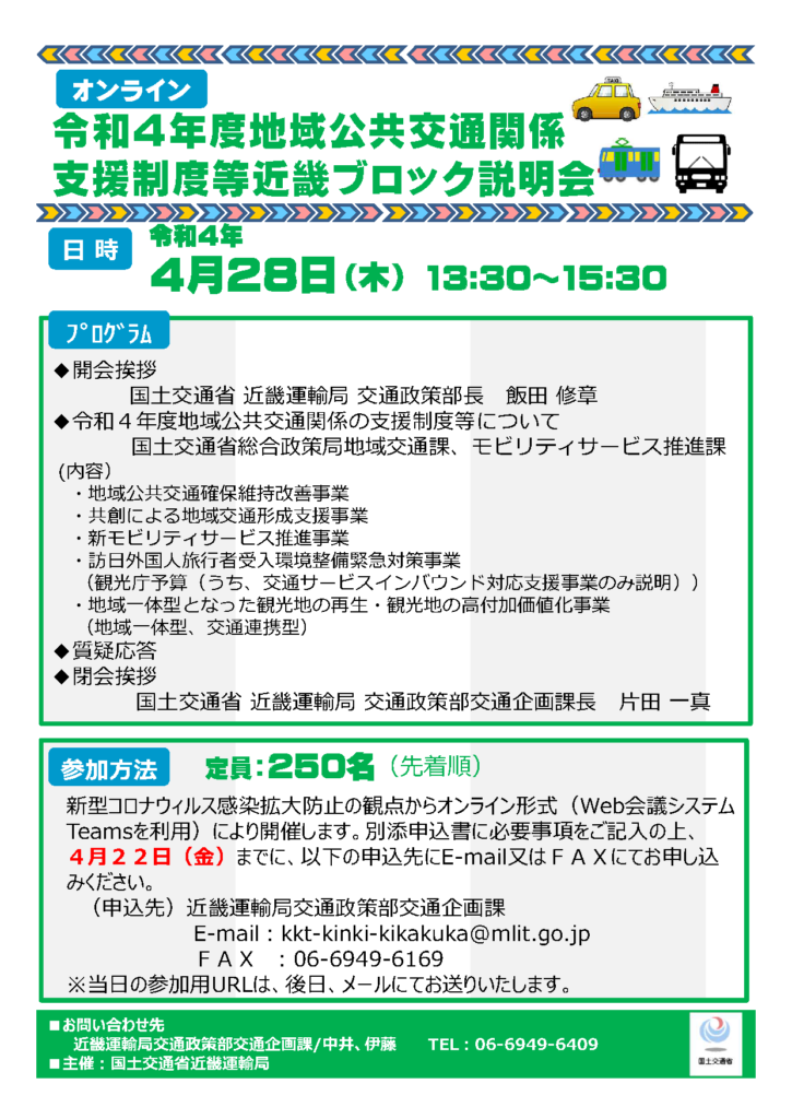 【近畿運輸局】 令和4年度地域公共交通関係支援制度等説明会