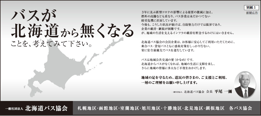 一方で、乗合バスはコロナ禍にあっても、地域のインフラであり生活の足として休業できず、利用者が減って、大幅な減収の中でも運行を継続しました。これに対し国の支援もなく、それも1年ならまだしも3年に及び人件費の負担が大きくのしかかり、大幅な赤字を余儀なくされたことに尽きると考えます。国からの地域の足の確保の求めに応じ、地域公共交通を担う私共が民間企業だから、こうした状況の中でも民間には一律に何らかの特別な支援はできないという対応は誠に理不尽な扱いです。